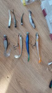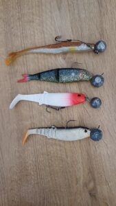 Z przynęt spinningowych najchętniej używam podłużnych, smukłych wahadłówek (18-40 g), przynęt gumowych (jaskółki, smukłe rippery i kopyta) o długości 13-20 cm, na główkach jigowych lub czeburaszkach z dozbrojką, mniejszych pilkerów (do 80 g) oraz woblerów głęboko schodzących.
