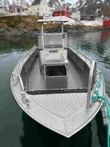 Do dyspozycji wędkarzy są aluminiowe łodzie Arronet 23.5 ft o długości ok. 7,2 m, z silnikiem Hondy lub Yamahy o mocy 150 KM. Są to jednostki rewelacyjne na warunki panujące na północy Norwegii. Każda łódź wyposażona jest m.in. w echosondę oraz ploter z GPS-em, kamizelki ratunkowe, osękę oraz skrzynki na ryby, gafy halibutowe, radio VHF, a także kotwice z liną.