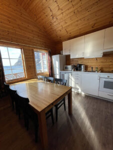 Nasza baza wędkarska znajduje się w zachodniej części wyspy w wiosce rybackiej Sørvær, blisko 40 km od stolicy wyspy – Hasvik, gdzie znajdują się lotnisko, przystań promowa, czy przychodnia lekarska. Do sklepu Joker i stacji benzynowej jest ok. 10 minut spacerem.